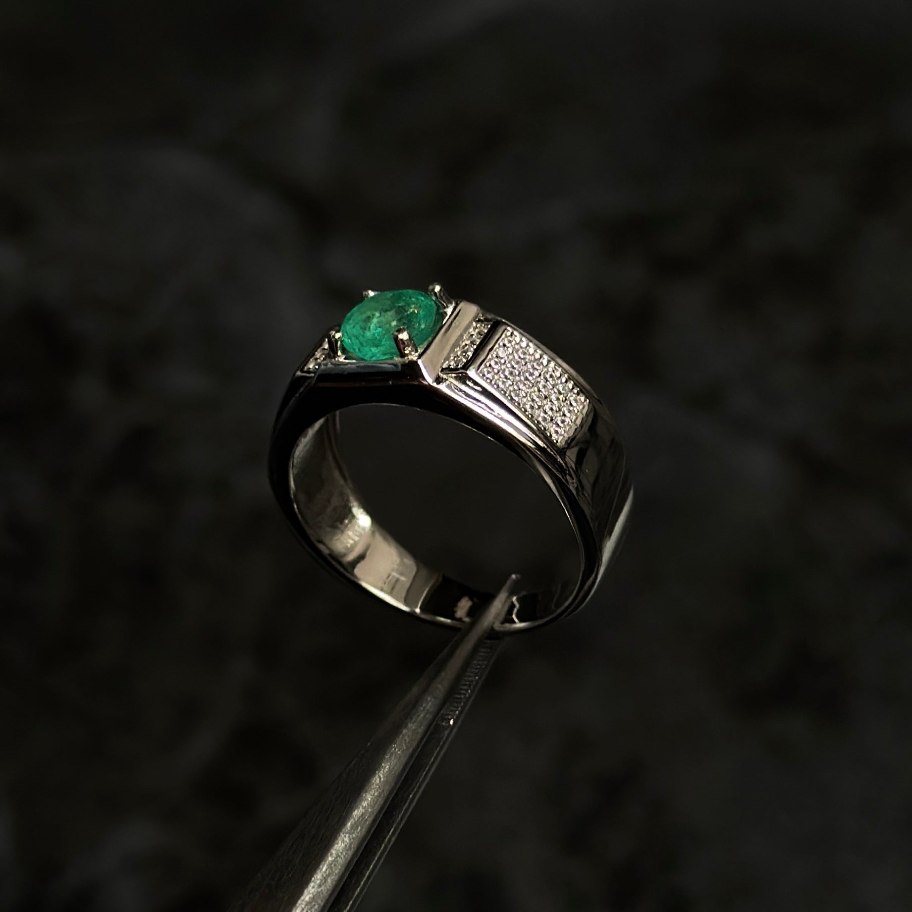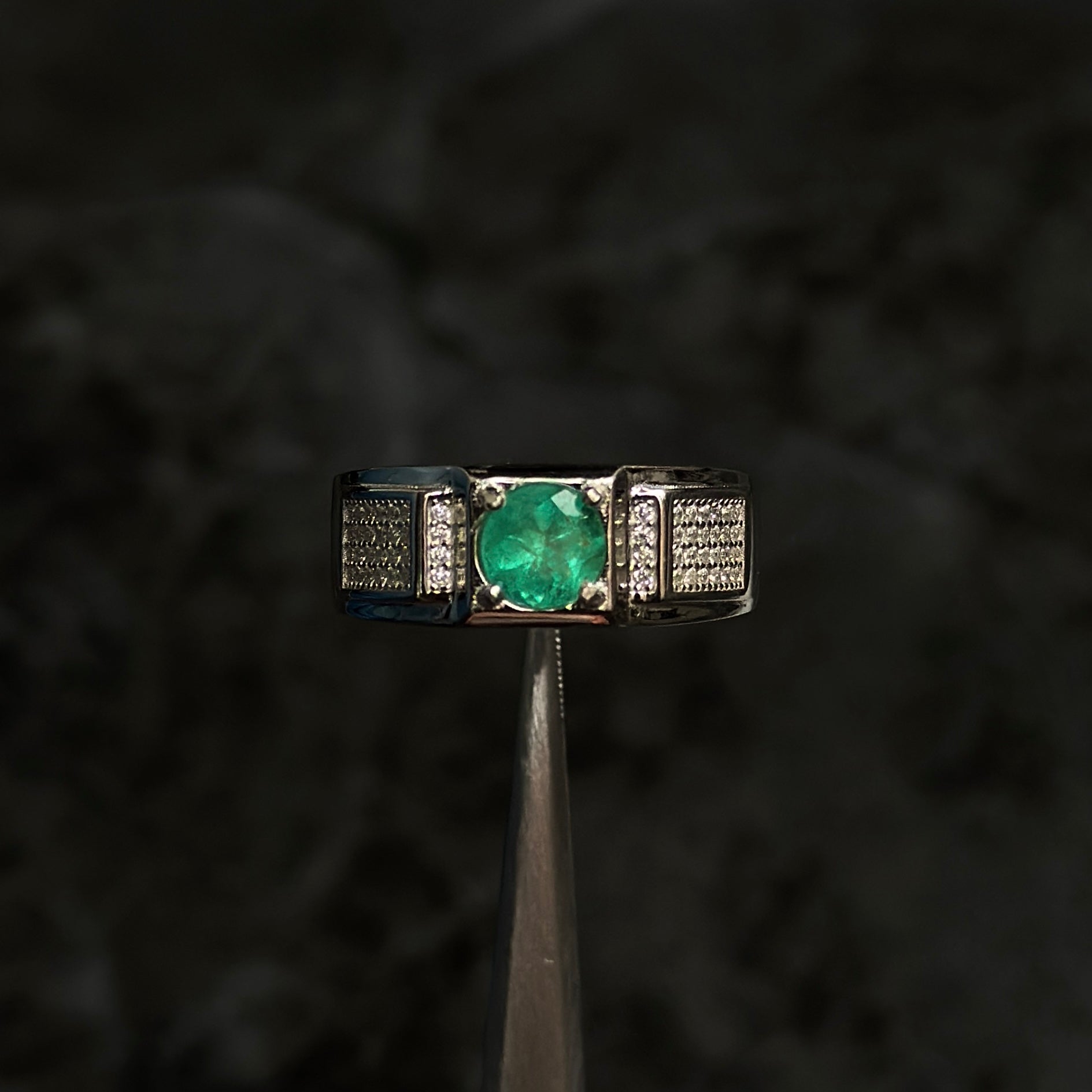 Luxury Ring #8 / Colombian Emerald / 925 Silver