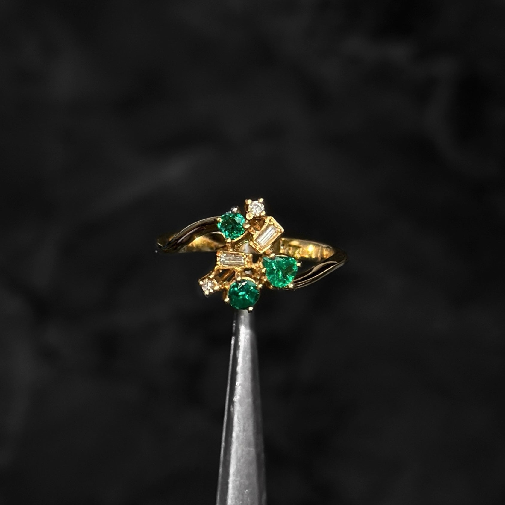 High Jewelry Ring / 18K Gold / Colombian Emeralds / Natural Diamonds