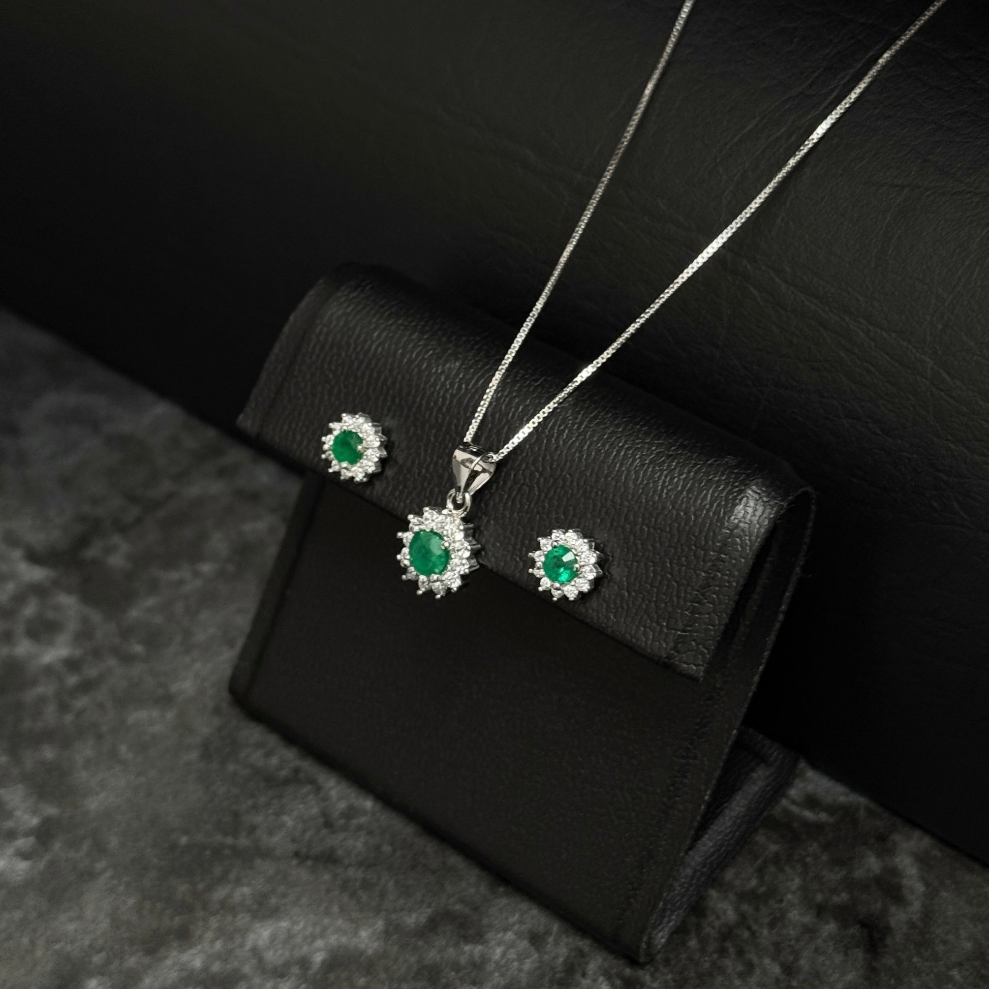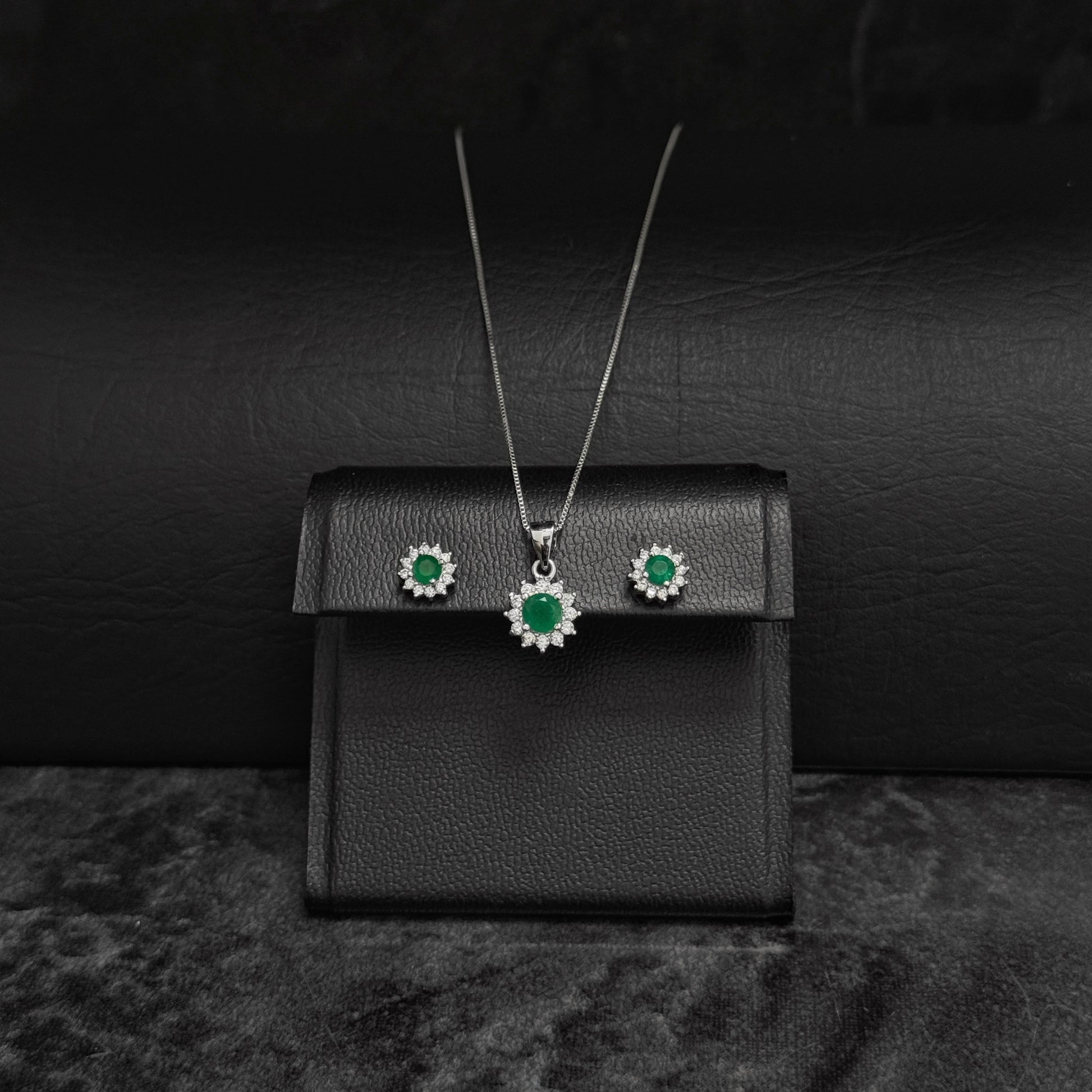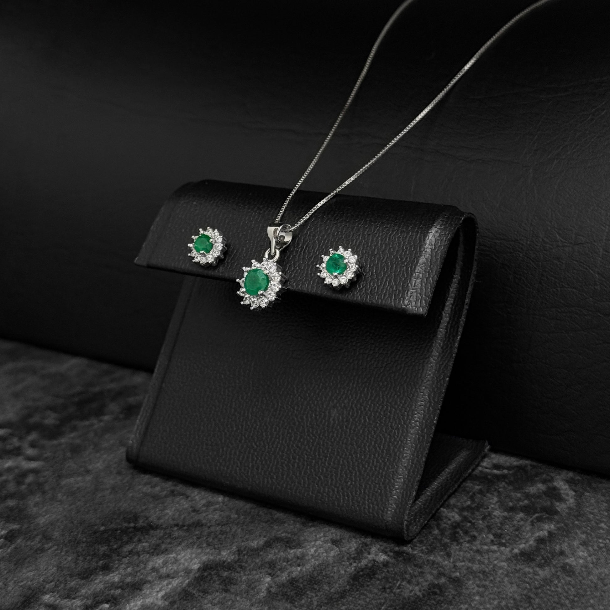 Chain-Pendant-Earring Set / Colombian Emeralds / 925 Silver