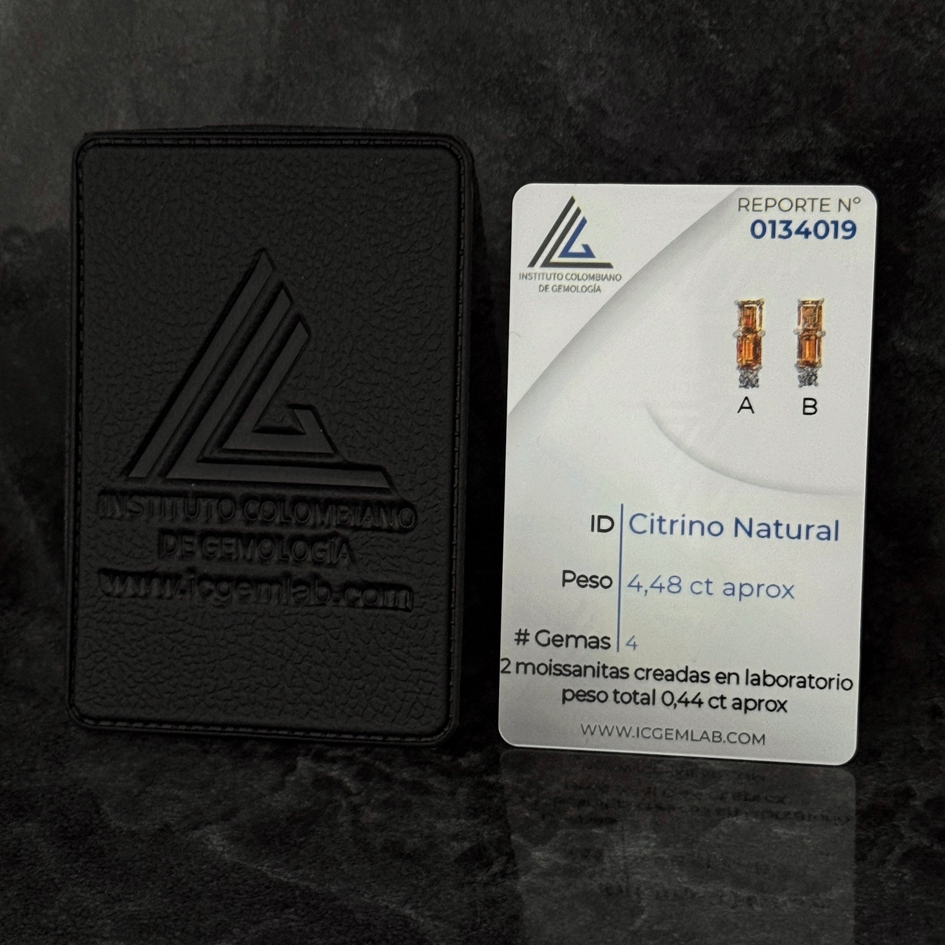 Stone: 4 Natural Citrines and 2 Lab Moissanites 4mm