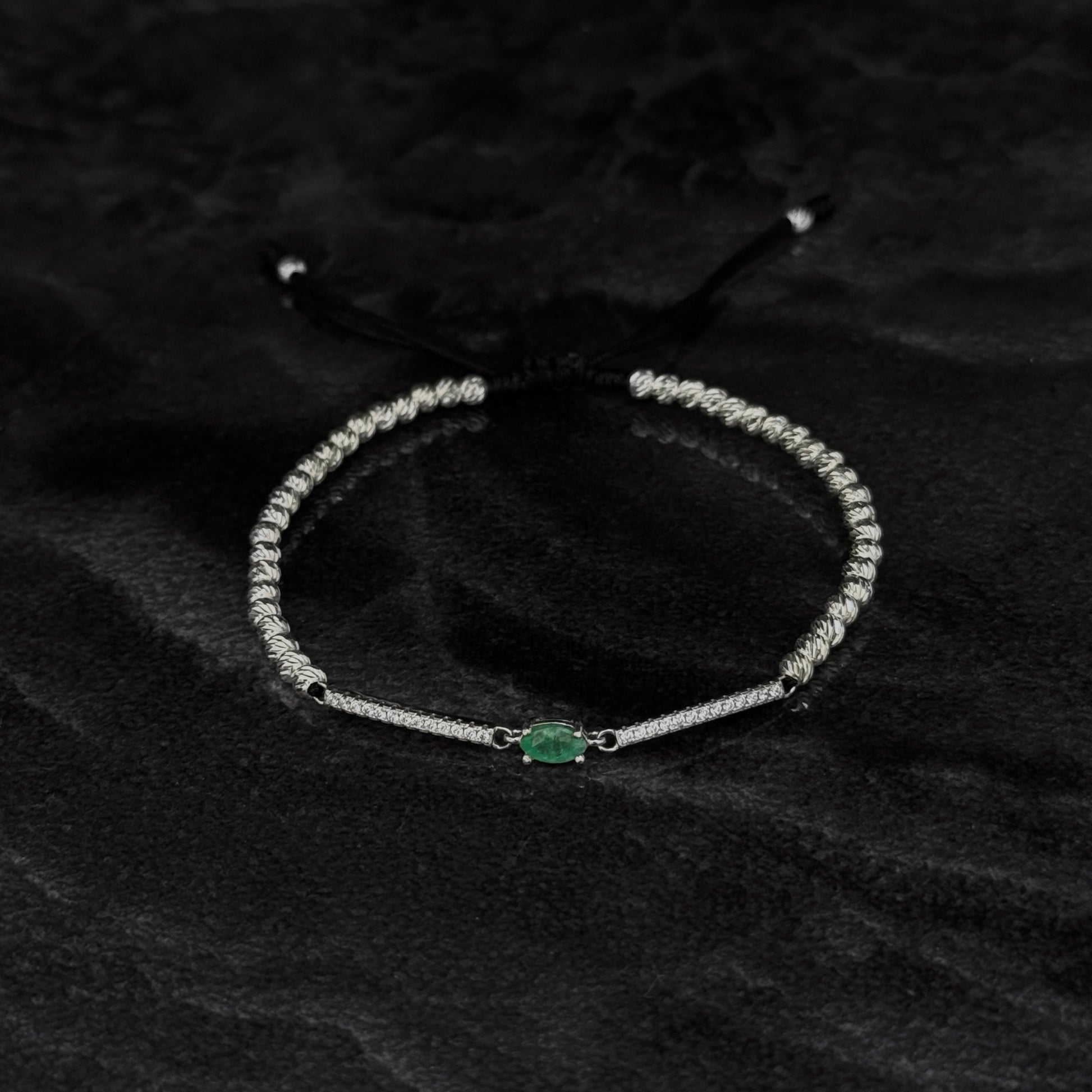 Pulsera Tejida / Esmeralda Colombiana / Plata 925